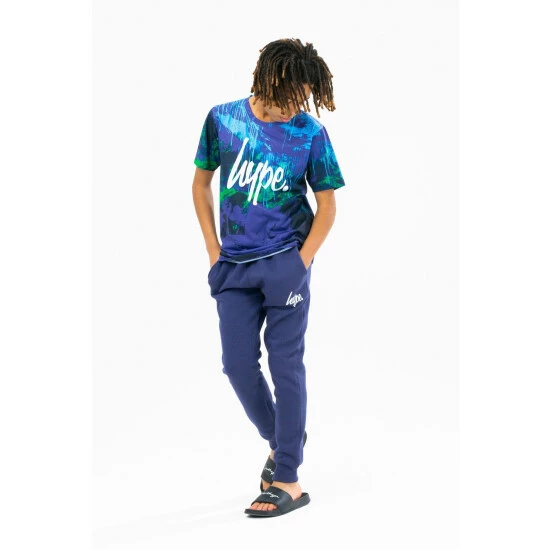 The Hype. Boys Navy Reef Spray Script Tee and Joggers Set is perfect for off-duty casual days. The t-shirt is designed in a 95% Poly, 5% Elastane fabric blend for a supreme comfortable feel and boasts an elasticated waistband and fitted cuffs.