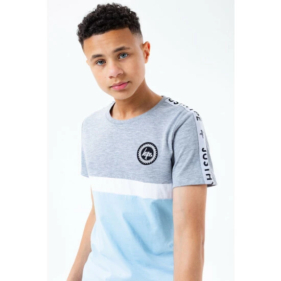 Add this classic Hype. kid’s T-shirt to their summer essentials. Made from soft cotton mix fabric and designed to bring soft blue hues to their everyday wear, the branded tape shoulders and iconic Hype. badge to chest add to its appeal.