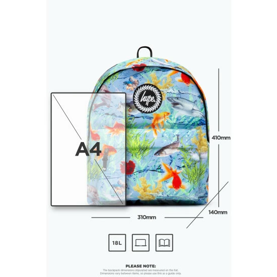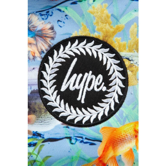 Meet the Hype. Blue and Orange Under Sea Backpack, part of the Hype. 2022 Back to School collection. Designed in their standard backpack shape in an all-over blue and orange under the sea print. Made from 100% polyester and finished with embroidered Hype. crest branding and a front pocket with a rubber zip puller. With straps that offer supreme comfort with just the right amount of padding. Wipe clean only.