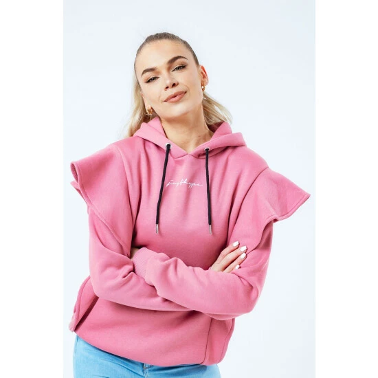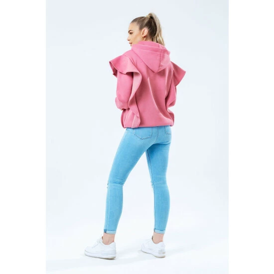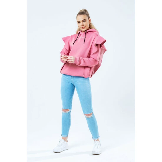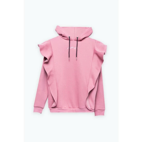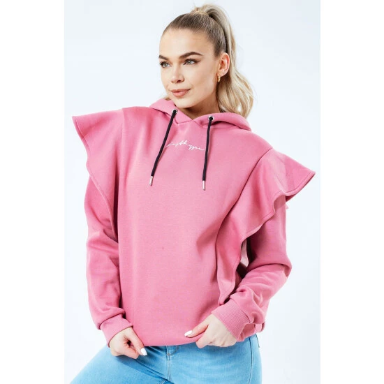 The Hype. black women’s scribble logo frill women’s pullover hoodie is perfect styled with a floaty animal print-inspired maxi skirt and high-top trainers. Boasting a classic black soft-touch fabric base ultimate comfort and breathable space. With a fixed hood, fitted hem and cuffs and drawstring pullers in our standard women’s hoodie shape. Highlighting on-trend frill detail down the front of the jumper, finished with the new! justhype signature logo embroidered across the front. Machine washable.
