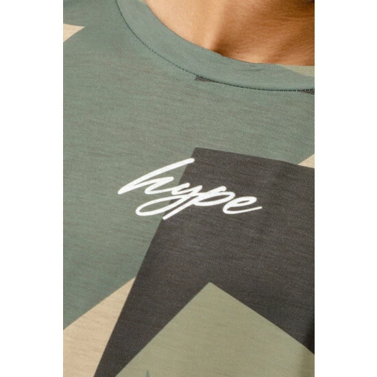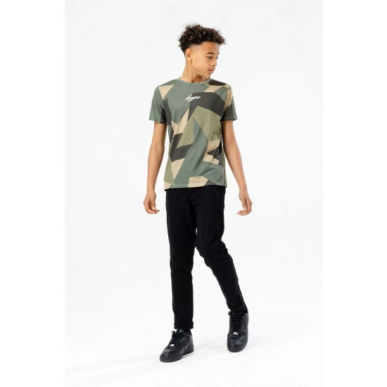 Make a statement in the Hype. Boys Green Cut Camo Scribble T-Shirt. Designed in our standard kids tee shape and made from a soft touch 95% polyester, 5% elastane fabric blend for the ultimate comfort. Featuring an all-over geometric cut camo print in a khaki colour palette.