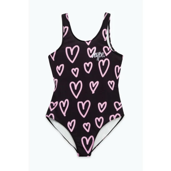 Swim is in. Meet the Hype. Girls Pink Heart Swimsuit.