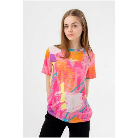 Make a statement in the HYPE. girl s pink marker scribble script T-shirt. Designed in our standard kids tee shape with a soft touch 95% polyester 5% elastane fabric blend in black for the ultimate comfort. Boasting an all-over marker scribble print featuring the HYPE. scribble logo in white and finished with a crew neckline and short sleeves. Wear with jeans and jacket for a casual-smart fit or joggers for a casual look. Machine wash at 30 degrees. Colour: Pink. Pattern: Abstract. Closure Type: No Closure.