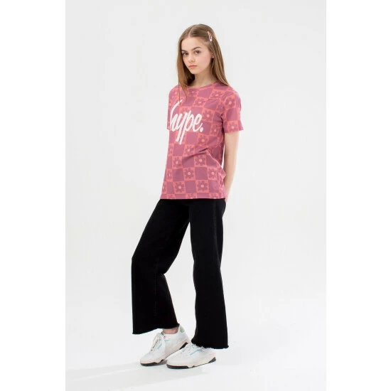 Make a statement in the Hype. Girls Purple Daisy Check Script T-Shirt. Designed in our standard kids tee shape with a soft touch 95% polyester, 5% elastane fabric blend for the ultimate comfort. Boasting an all-over purple daisy check print.