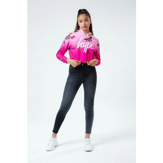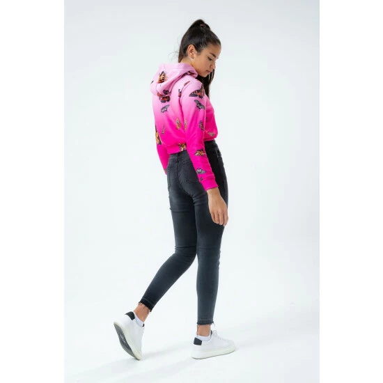With a lovely pink fade detail, this crop hoodie from Hype. is designed in a pull-over shape with a fixed hood, long sleeves and butterfly print. With a contrast Hype. logo.