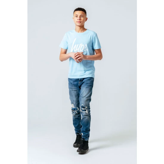 In dreamy light sky blue, this casual t-shirt from Hype. is sure to see some serious rotation in their wardrobe. With a round neckline, short sleeves and Hype. logo print to finish.