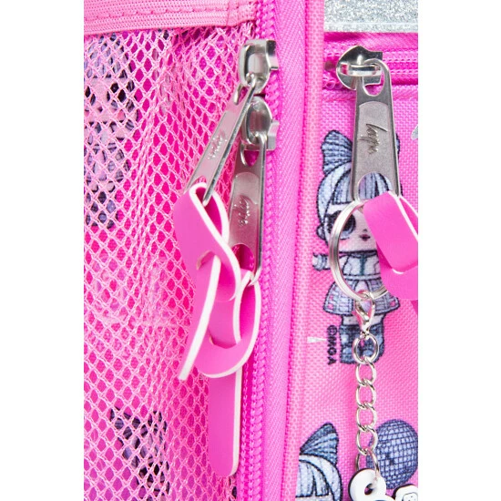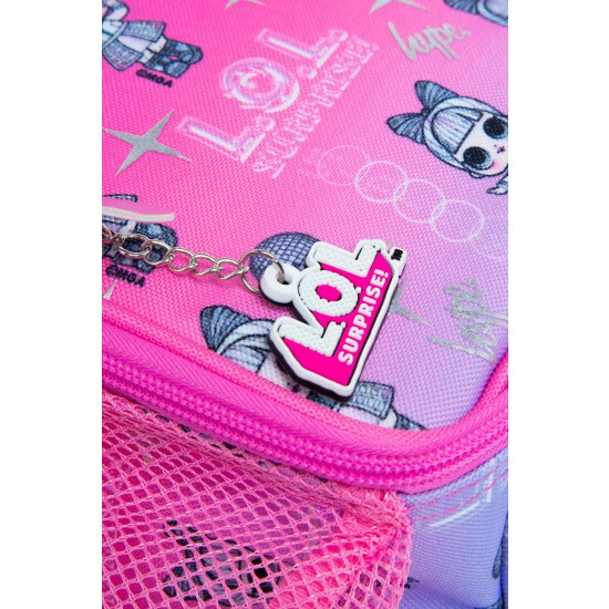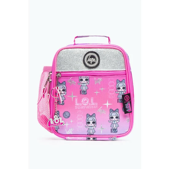 The HYPE. x LOL Dancebot Lunch Bag is bound to stand out. With a pink and purple ombre design and a silver sparkly feature along the top, this lunchbox features a side mesh water bottle pocket to securely hold your matching HYPE. Dancebot water bottle. A grab handle on the top make it a easy transporter of all of your favourites snacks and treats. Insulated lining to help keep your food fresh. Wipe clean only.