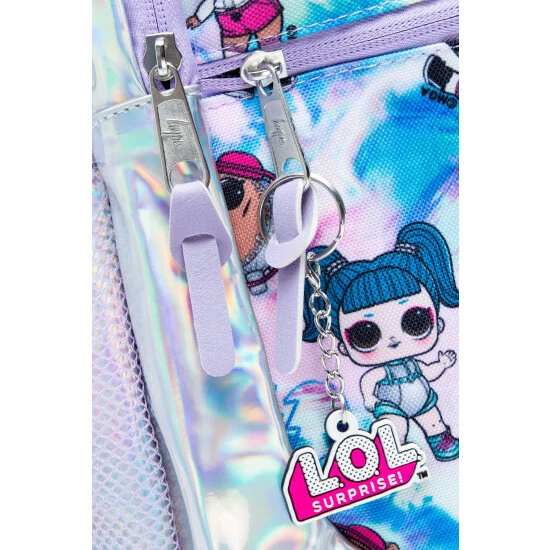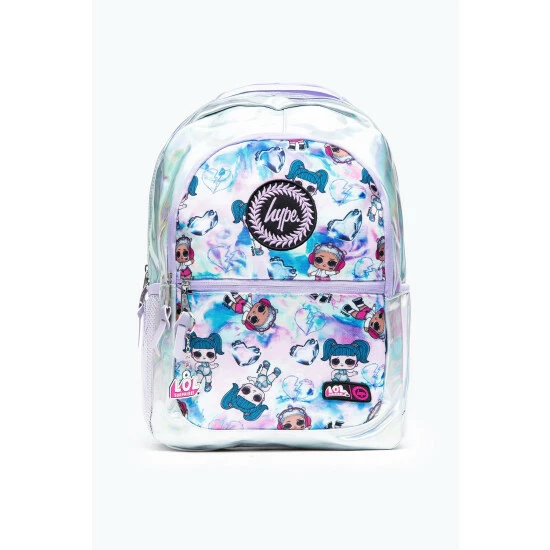 Introducing Hype. x LOL Glamstronaut Backpack Store all your belongings in a bag that will keep everything secure in a stand out purple iridescent look and an all-over LOL Doll print. Finished with a front pocket, grab handle, embossed zips, branded inside lining and the iconic Hype. crest badge in lilac on the front. The straps offer supreme comfort with just the right amount of padding. Wipe clean only.