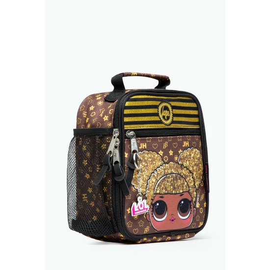 The HYPE. x LOL Queen Bee Lunch Bag is designed to be seen. In the on-trend icon print in a brown and gold colour scheme, the unisex lunchbox shape and style is a go-to for everyone. This lunch box is perfect for storing your school lunch, or even as a cute picnic transporter. Featuring a mesh side pocket to store your water bottle and inside insulated lining to keep your lunch fresh. With an all over leopard inspired print in a neutral colour palette. Finished with the iconic HYPE. crest logo and LOL DOLL Face to the front. Wipe clean only.