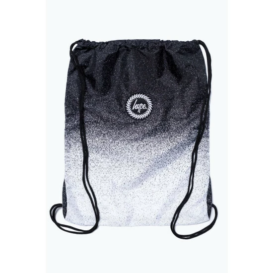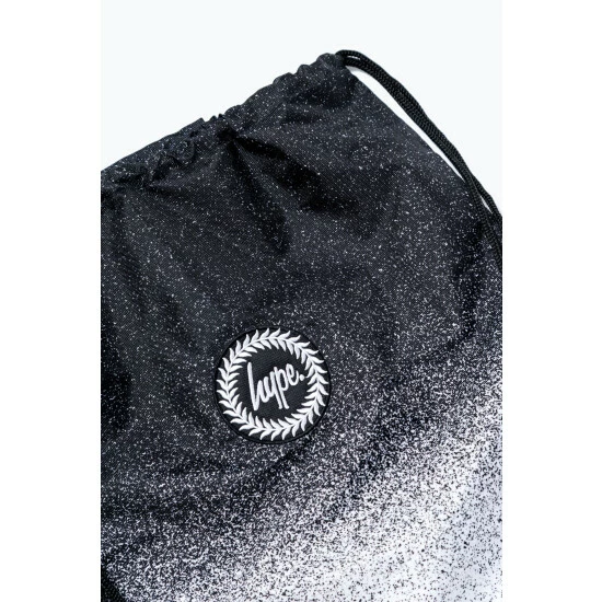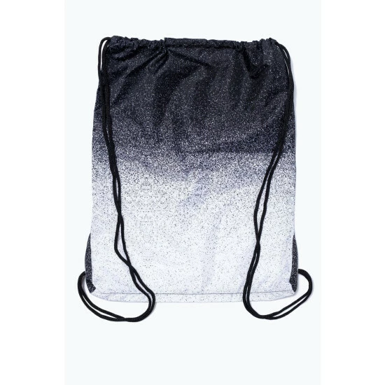 Colour Black/White pattern speckle fade gender unisex closure type drawstring. Care instruction: wipe clean only. Dimensions 52.5cms x 42 cms. Model name: Mono Speckle Fade. Inner material type: branded inner lining – polyester capacity 8 litres print type sublimation. Mono speckle fade drawstring bag.