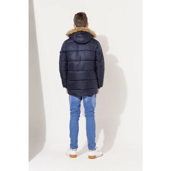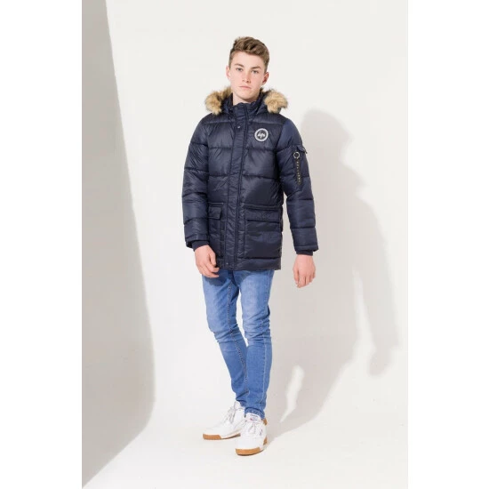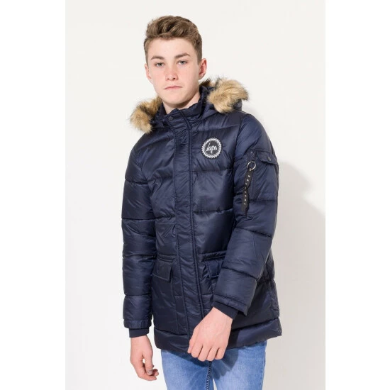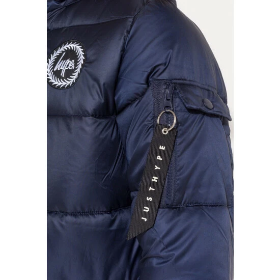 Imagine a completely versatile jacket that features both the parka and puffer style. Meet the Hype. Navy Kids Explorer Jacket.