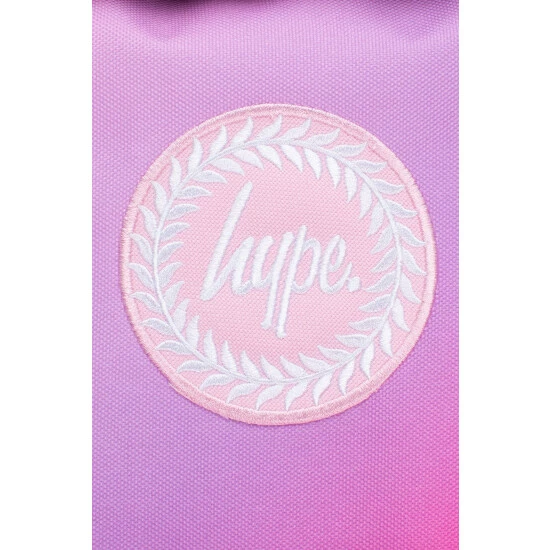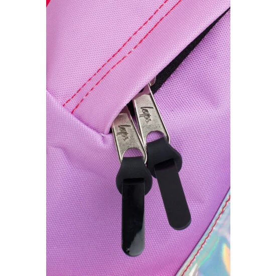 The HYPE. Unisex Pink Fade Holographic Pocket Crest Backpack is designed in our standard backpack shape in pink with holographic PU front pocket. Made from 10% PU and 90% polyester and finished with embroidered HYPE. crest branding in white and pink. Boasting a pink grab handle and straps that offer supreme comfort with just the right amount of padding. Wipe clean only.