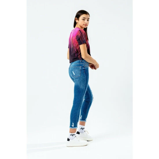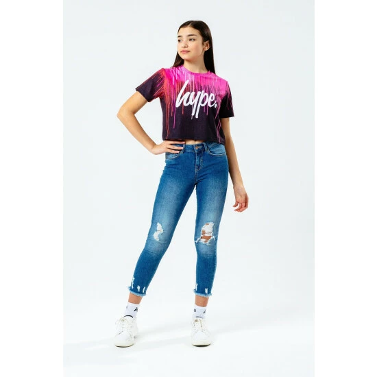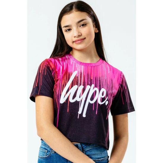 In a cool crop style, this Hype. t-shirt is designed with a round neckline and short sleeves. With a lilac drip detail and Hype. logo print.