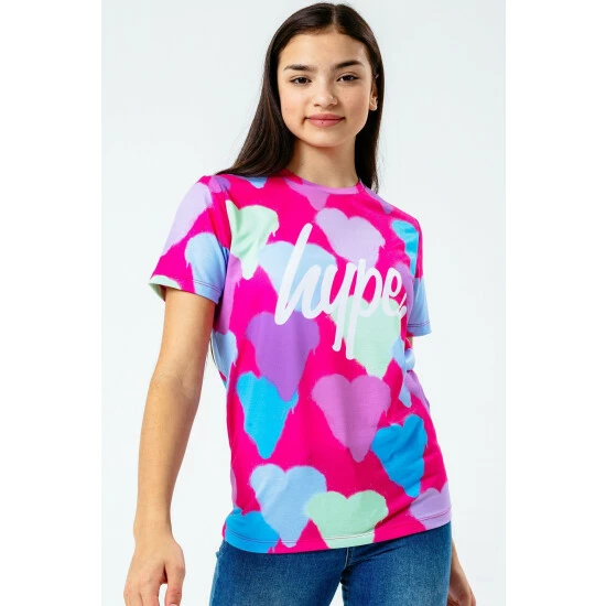 In a bright colour with statement spray hearts, this Hype. t-shirt is designed with a round neckline, short sleeves and the signature Hype. logo through the front.