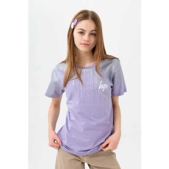 Make a statement in the Hype. Orchid Glitter Drips Script T-Shirt. Designed in our standard kids tee shape with a soft touch fabric base for the ultimate comfort. Boasting our iconic drip design in orchid.