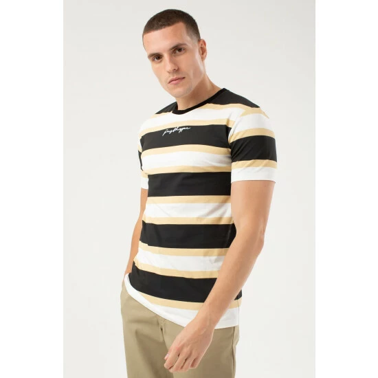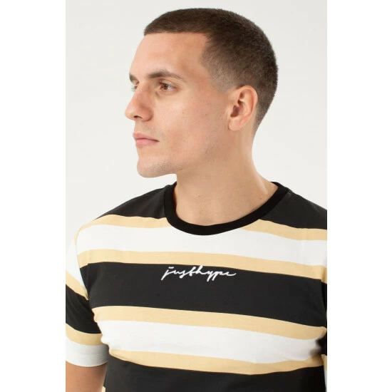 Featuring a subtle stripe design, this cotton t-shirt from Hype. is perfect for everyday styling. With a round neckline, short sleeves and Just Hype script logo print.