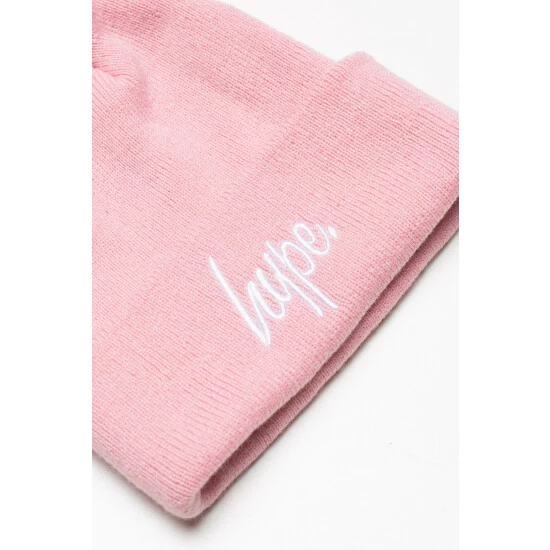 Wrap up in style with the HYPE. unisex pink bobble script hat. Designed in a soft-touch acrylic fabric in pink in our standard turned-up cuff design. Finished with a black pom pom top and the HYPE. script logo in white.