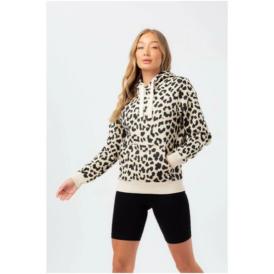 Introducing the HYPE. women’s cream cheetah JustHype drawcord hoodie. Designed in a soft-touch 100% polyester fabric base in our standard drawcord hoodie shape. Featuring an all-over cream cheetah sublimated print, fitted hem and cuffs, kangaroo pocket, fixed hood, and cream branded drawcords. Wear it with your favourite T-shirt and joggers for an off-duty vibe.