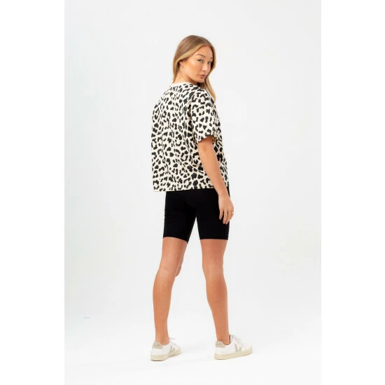 Stay comfortable in style with the HYPE. women’s cream leopard print woven tab boxy T-Shirt. Designed in our boxy fit T-shirt style in an all-over cream and brown leopard print. Boasting a 100% cotton fabric base for supreme comfort and is finished with a woven tab featuring the JustHype scribble logo. Wear with a pair of HYPE. leggings and a hoodie for the ultimate off-duty casual fit.