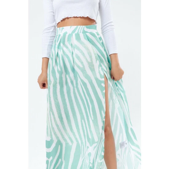 For a comfortable, feminine look full of summer sass opt for this mint zebra maxi skirt by Hype. Designed in floaty, pleated fabric with a stylish side split. Effortless cool.