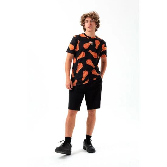 The Hype. X KFC black original recipe T-shirt is designed in 100% cotton for a supreme amount of comfort. Featuring an all-over crispy chicken drumstick print and is finished with a crew neckline, short sleeves, and the Hype. X KFC lockup logo in contrasting white. Grab the matching bag and hoodie to complete the look.