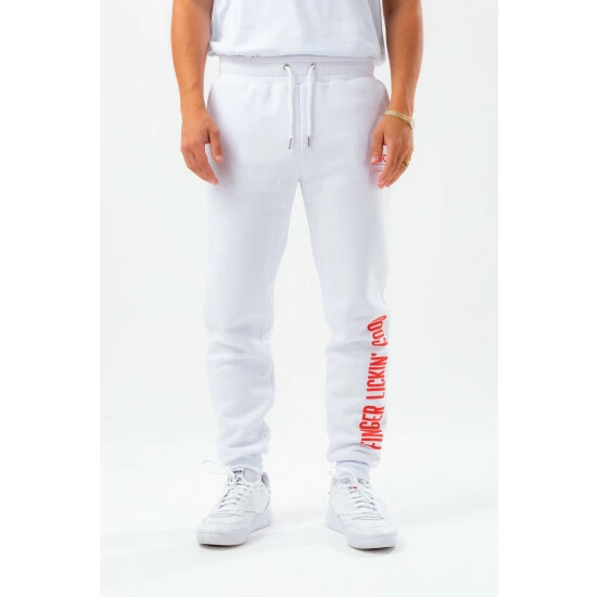 The Hype. x KFC white finger lickin good joggers are designed in a soft touch 65% cotton 35% polyester white fabric blend for the ultimate amount of comfort. Featuring the iconic it’s finger lickin good slogan in bold red print on the leg and finished with drawstring pullers, an elasticated waistband, fitted cuffs, and the Hype. X KFC lockup logo in red. Wear with the T-shirt and hoodie to complete the look. Machine washable.