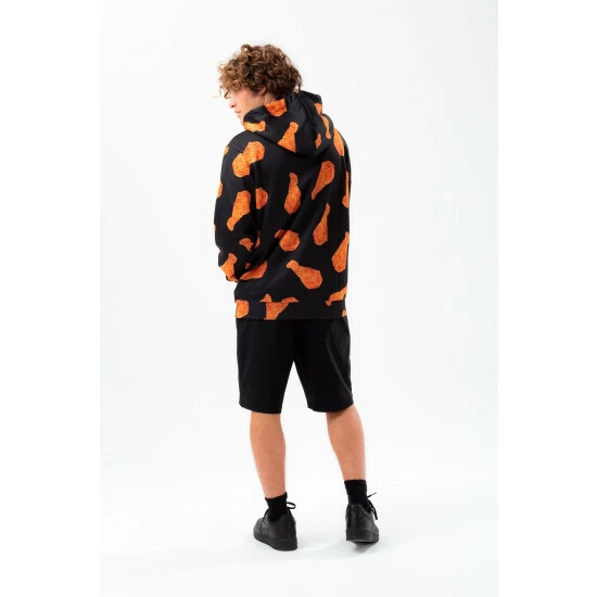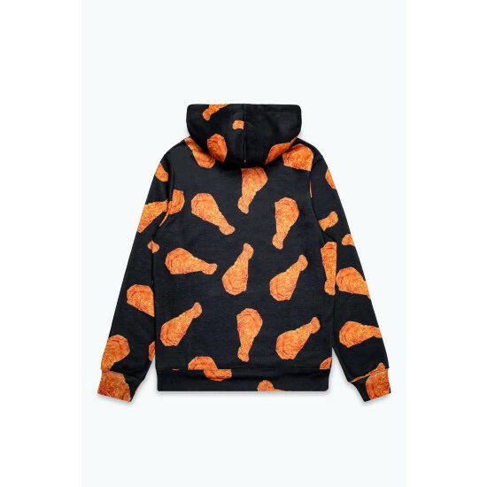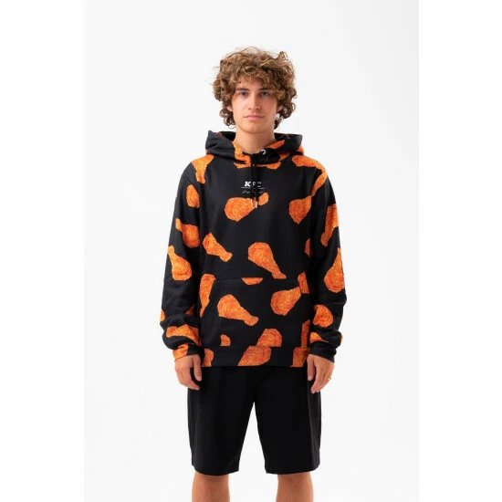 The HYPE. X KFC Black Original Recipe is designed in a soft touch 100% polyester black fabric base for the ultimate amount of comfort. Featuring an all-over original recipe crispy chicken drumstick repeat print and finished with drawstring black pullers with branded metal aglets, a kangaroo pocket, fitted hem and cuffs, and the HYPE. X KFC lockup logo in contrasting white. Machine washable.