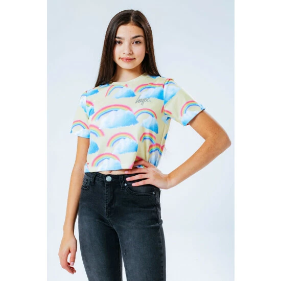 Featuring a yellow lemon base with a rainbow print, this crop t-shirt from Hype. is designed with a round neckline and short sleeves. With a Hype. logo to finish.